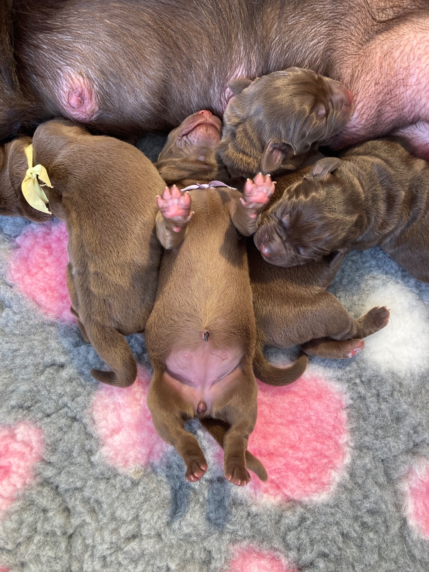 Naprostá pohodářka, velmi kontaktní, mazlivá a přátelská. Milovnice vody(spíše bahna) a aportování.